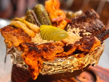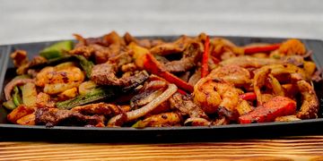 Grill chicken, outside skirt beef, Bacon wrapped shrimp, cactus leave, green onions, jalapeño, chorizo and queso fresco, served with choice of tortillas, rice and beans.