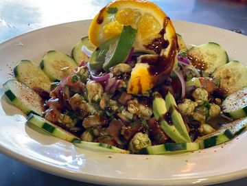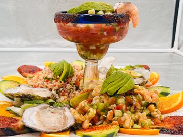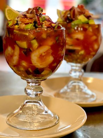 combination of shrimp, cucumber, avocado, and pico de gallo on our cocktail sauce.