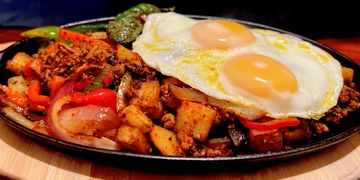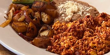Prepared with dice potatoes, grill bell peppers, onions, chorizo, choice of eggs, melted cheese and choice of tortillas.
