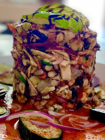 Prepared with cooked shrimp, octopus, imitation crab, pico de gallo, avocado, and our house cocktail sauce.
