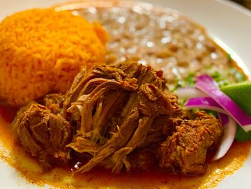Slow cooked beef with our barbacoa adobo, served with rice, beans and choice of tortillas.