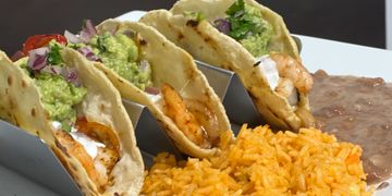 Your choice of 2 regular tacos, 2 Sopes, 2 Enchiladas, 4 Chicken Flautas, OR 1 Chile Relleno; served with rice and beans.